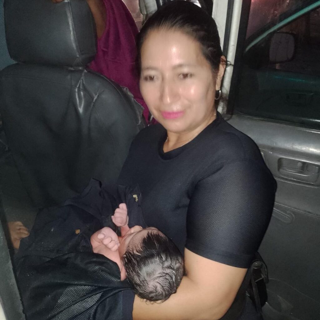 Nacionales Agentes de la PNC dan la bienvenida a un bebé a bordo de una patrulla en San Salvador enero 31, 2025