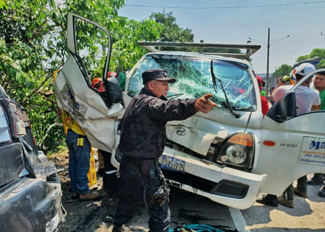 La Policía Nacional Civil (PNC), registro un fuerte accidente de tránsito en el kilómetro 5 de la carretera Troncal del Norte, Ciudad Delgado, el cual deja a una persona atrapada en un vehículo y varios lesionados.