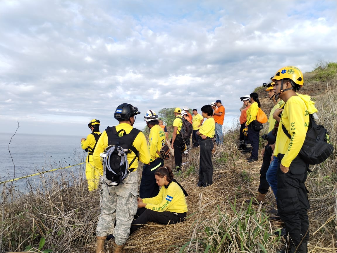 Elementos de Comandos de Salvamento se encuentran realizando labores de búsqueda de un socorrista de la institución, quien fue arrastrado por una ola mientras realizaba una práctica de rapel en la playa Escondida, ubicada en el kilómetro 54 de la carretera Litoral, en el distrito de Chiltiupan.
