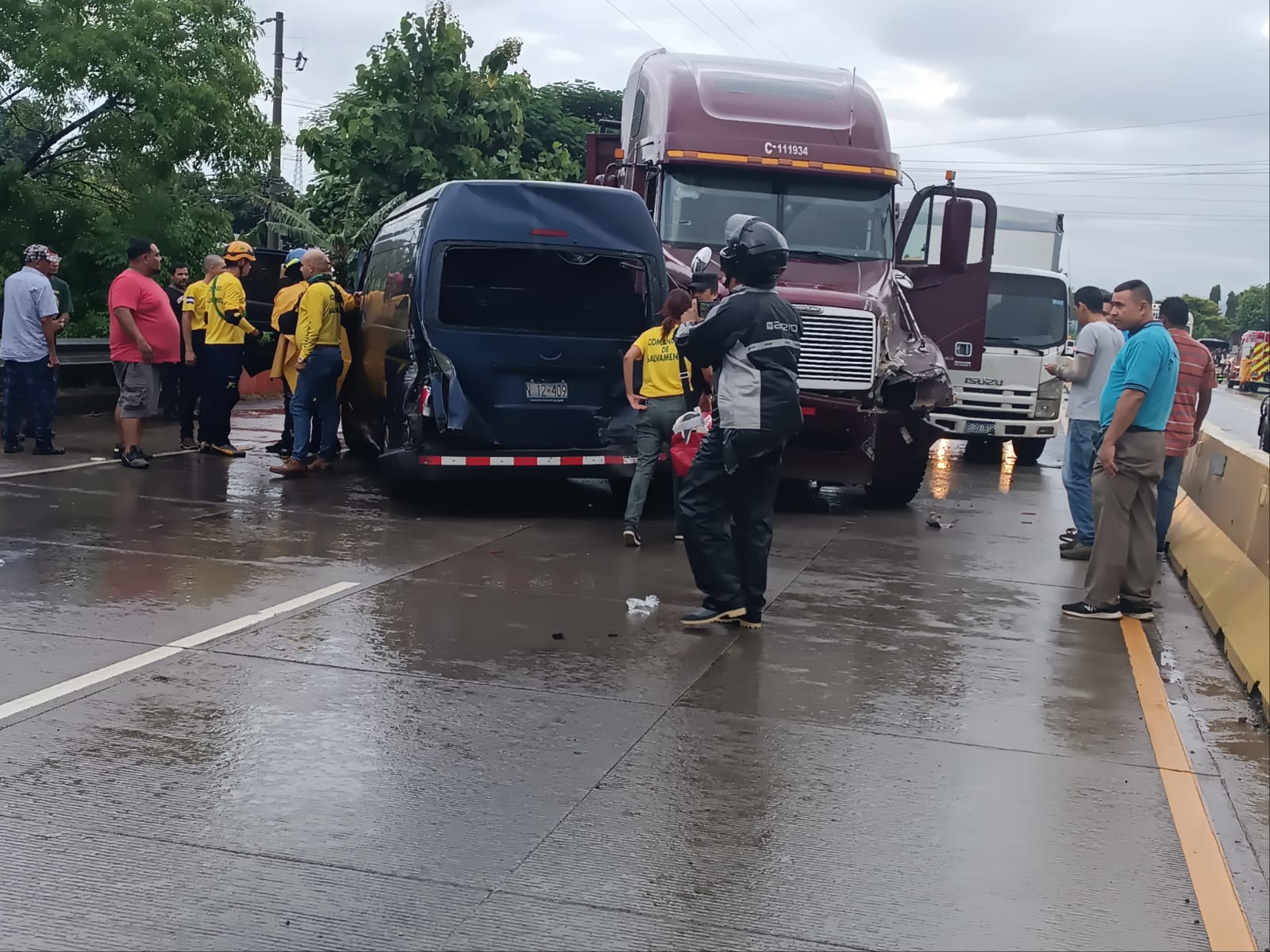 Accidente de tránsito en la curva de la muerte Nauilingo Sonsonate doce pasajeros abordo de un microbús con una rastra.