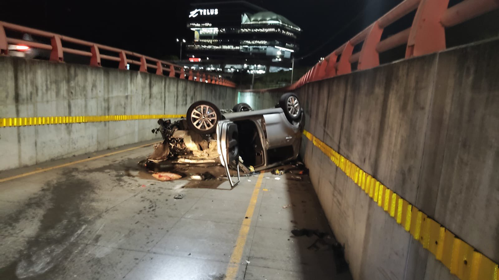 Dos personas resultaron lesionadas el pasado domingo tras un fuerte accidente de tránsito en el paso a desnivel de las Naciones Unidas, en Ciudad Merliot.
