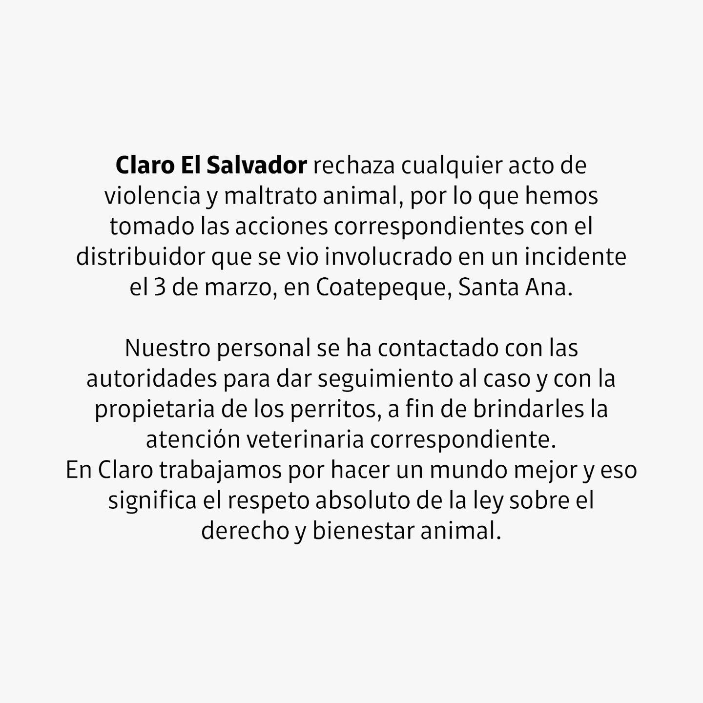 “Hemos tomado las acciones correspondientes con el distribuidor que se vio involucrado en un incidente el 3 de marzo, en Coatepeque, Santa Ana”, se lee en el texto.