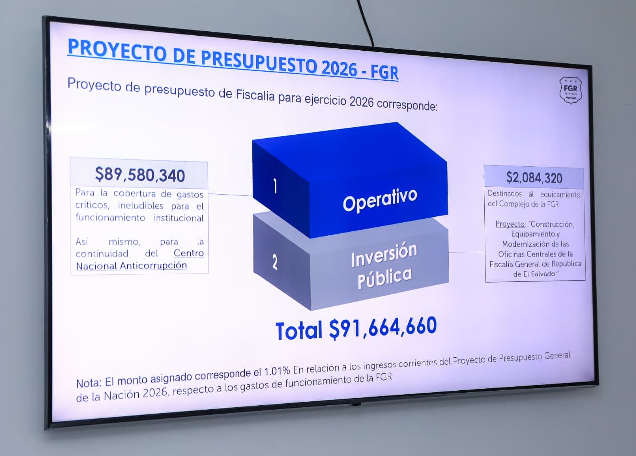 La cifra representa un incremento de $3.09 millones respecto al presupuesto vigente de 2025, que fue de $88,568,541. Según explicó Delgado, el objetivo del aumento es fortalecer las capacidades internas y externas de la institución, con el fin de garantizar una labor eficiente, efectiva y transparente en la investigación del delito y el acceso a la justicia.