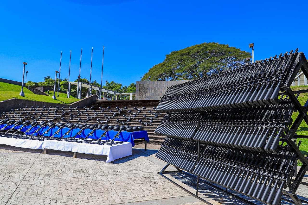 El armamento y equipo de protección fortalece el trabajo de los elementos que trabajan en la ejecución del Plan Control Territorial, lo que ha permitido la captura de más de 61 mil terroristas durante el período de Régimen de Excepción.
