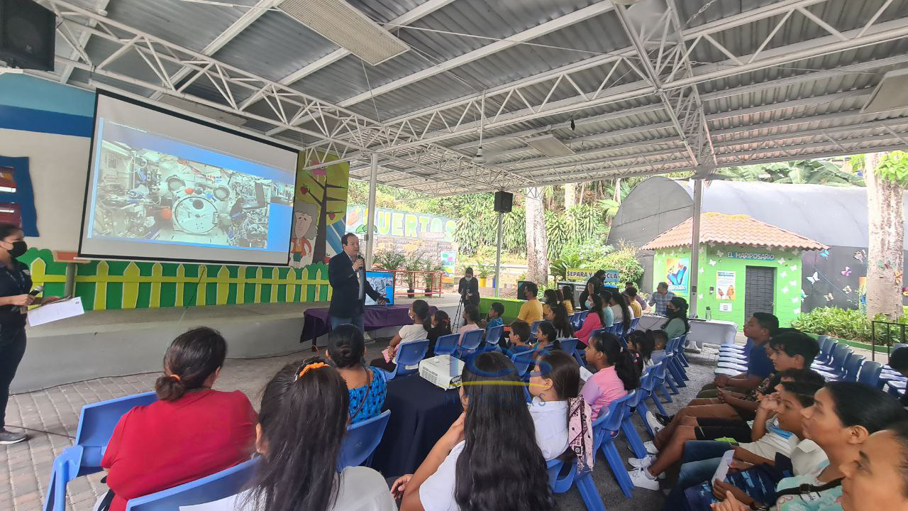 El salvadoreño compartió su gran experiencia en un enlace directo desde la Estación Espacial Internacional, donde realiza su misión desde septiembre. El museo Tin Marín estuvo a cargo de la iniciativa, en alianza con Fundasal y en coordinación con la NASA, que no dudó en permitir este espacio para la niñez.