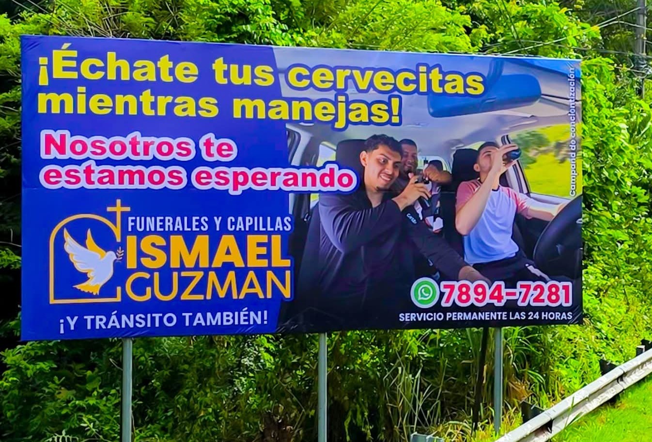 En Sensuntepeque, Cabañas, la funeraria y capillas Ismael Guzmán decidió apostar por un enfoque poco convencional para llamar la atención de los conductores: el humor negro como herramienta de prevención. Con una serie de vallas publicitarias instaladas en puntos estratégicos de la ciudad, la iniciativa busca que automovilistas y motociclistas reflexionen sobre los riesgos de conducir bajo los efectos del alcohol o distraídos por el teléfono.