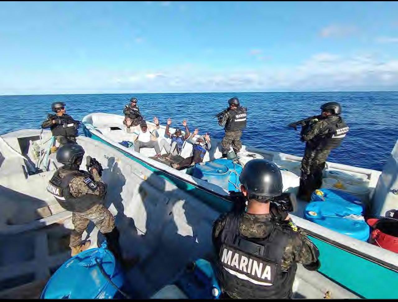 El presidente de la República, Nayib Bukele, informó el pasado domingo sobre una operación sin precedentes llevada a cabo por la Marina Nacional de la Fuerza Armada. La embarcación interceptada transportaba 1.3 toneladas de cocaína a 880 millas náuticas al suroeste de la Bocana el Cordoncillo, en el Estero de Jaltepeque, en La Paz.