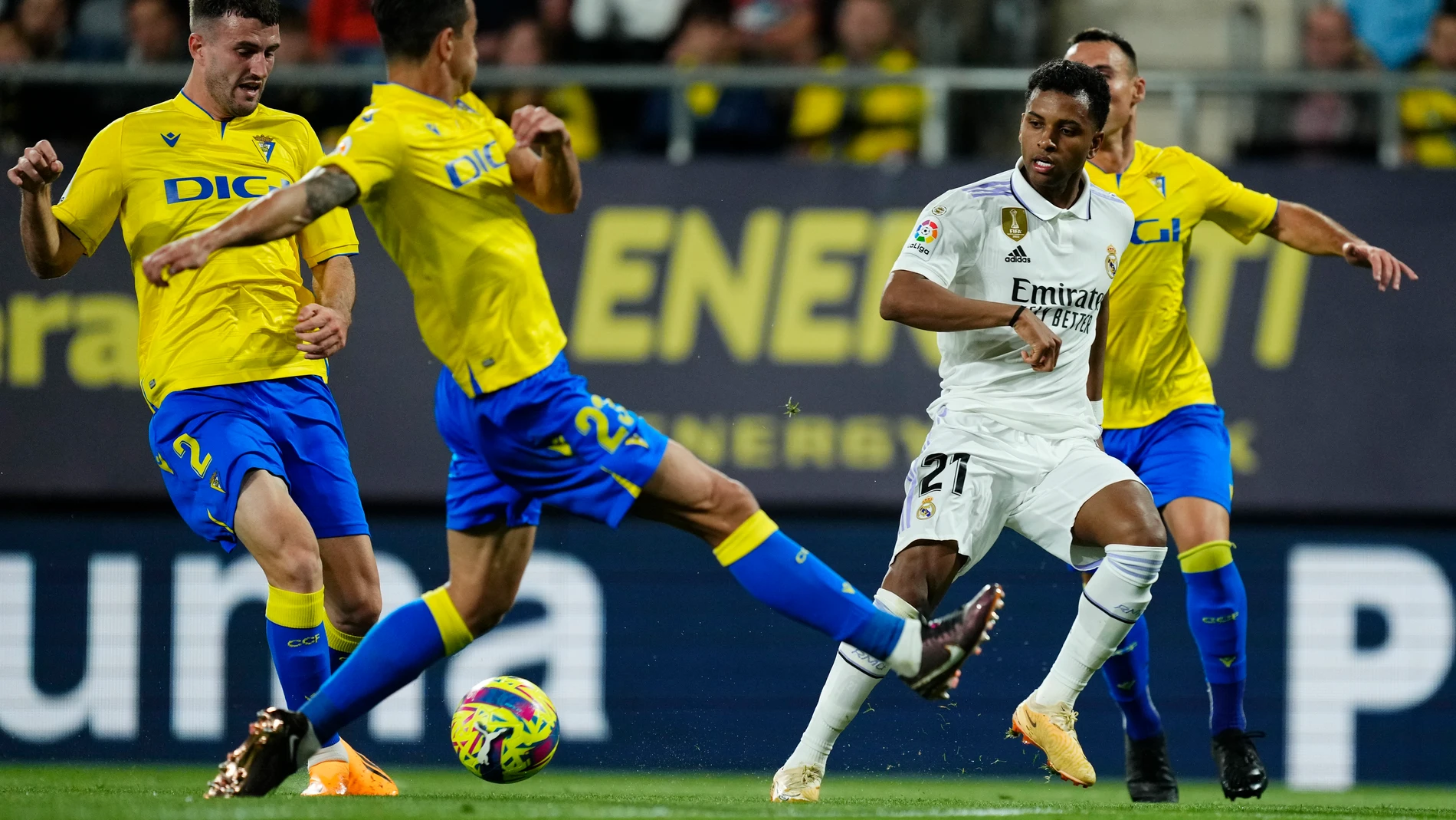 El Real Madrid no salió nada contemplativo. Además de la ausencia del extremo brasileño y de Toni Kroos, Camavinga, Modric y Carvajal también tuvieron descanso, pero esta vez no hubo tiempo para la relajación por la cercanía de Stamford Bridge. El actual campeón salió decidido y muy pronto mandó, aunque el Cádiz no fue excesivamente defensivo y también trató de desplegarse y amenazar.