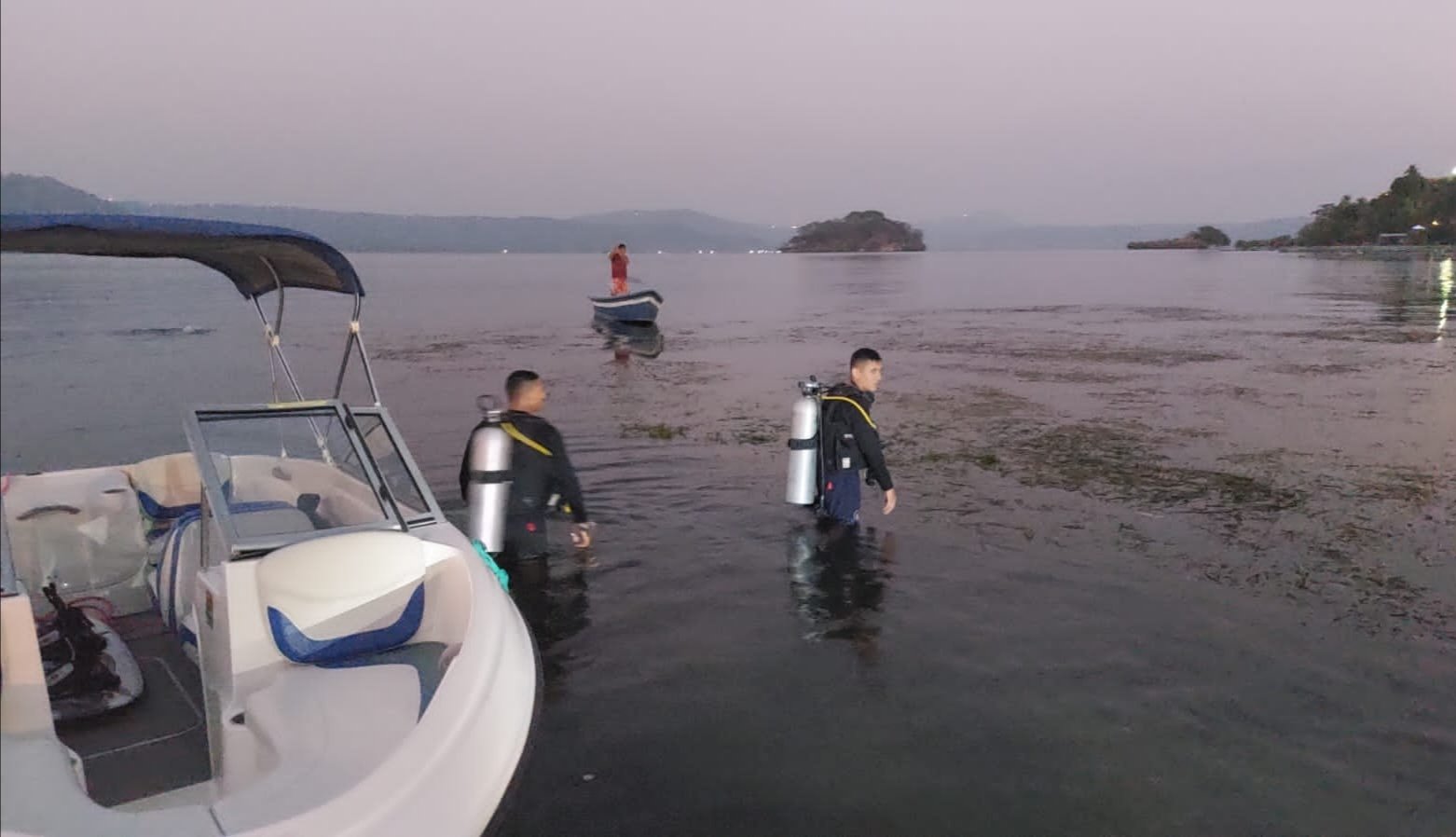 Personal de buzos de la Fuerza Naval que se encuentran al servicio de la población para atender emergencias en el Lago de Ilopango, recuperaron el cuerpo sin vida de una persona que había sido reportada como desaparecida mientras se bañaba en el sector del ctón. Joya Grande. pic.twitter.com/GRpJmEYK4i