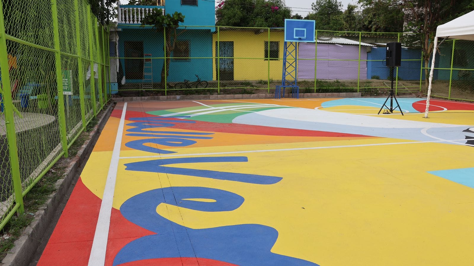 - Restauración y pintura de la cancha de básquetbol, senderos peatonales y accesos