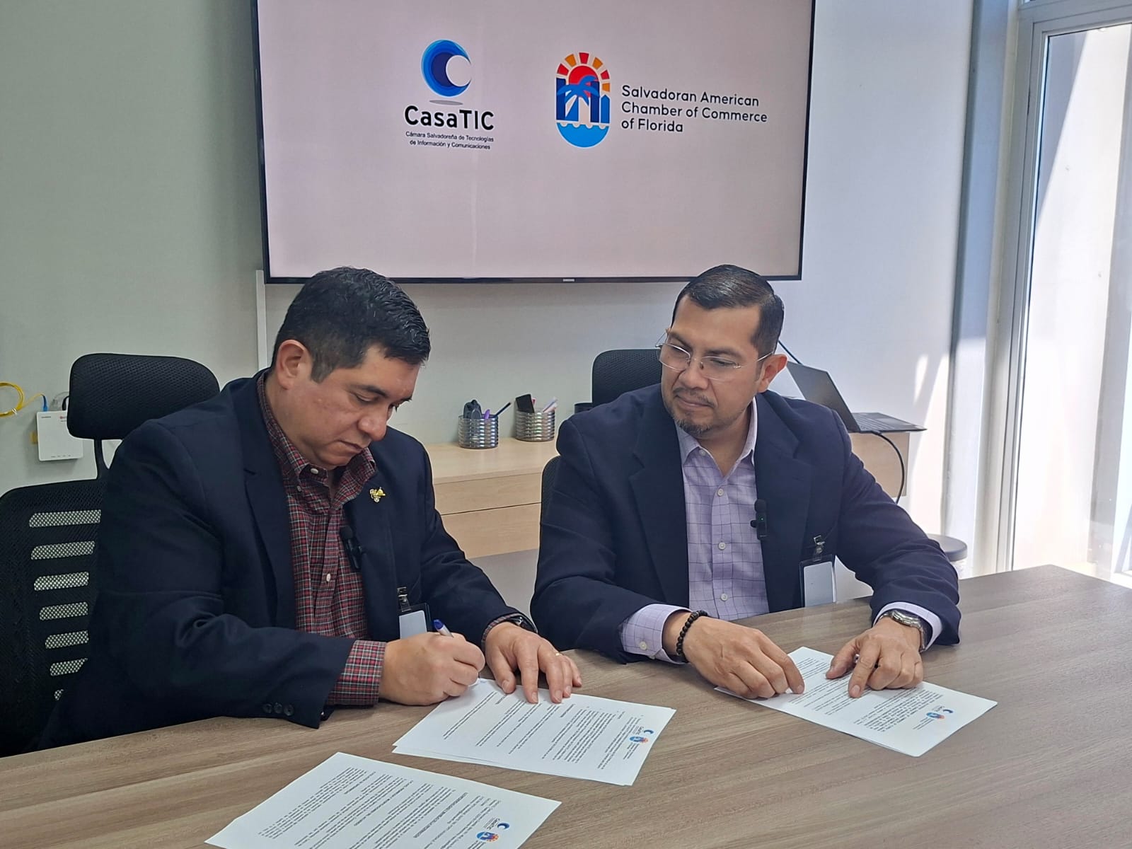 La Cámara Salvadoreña de Comercio de Florida (SALCHAM) y la Cámara Salvadoreña de Tecnologías de Información y Comunicaciones (CASATIC) firmaron esta mañana un convenio estratégico orientado a fortalecer las oportunidades de negocio en el sector tecnológico entre El Salvador y Estados Unidos.